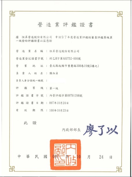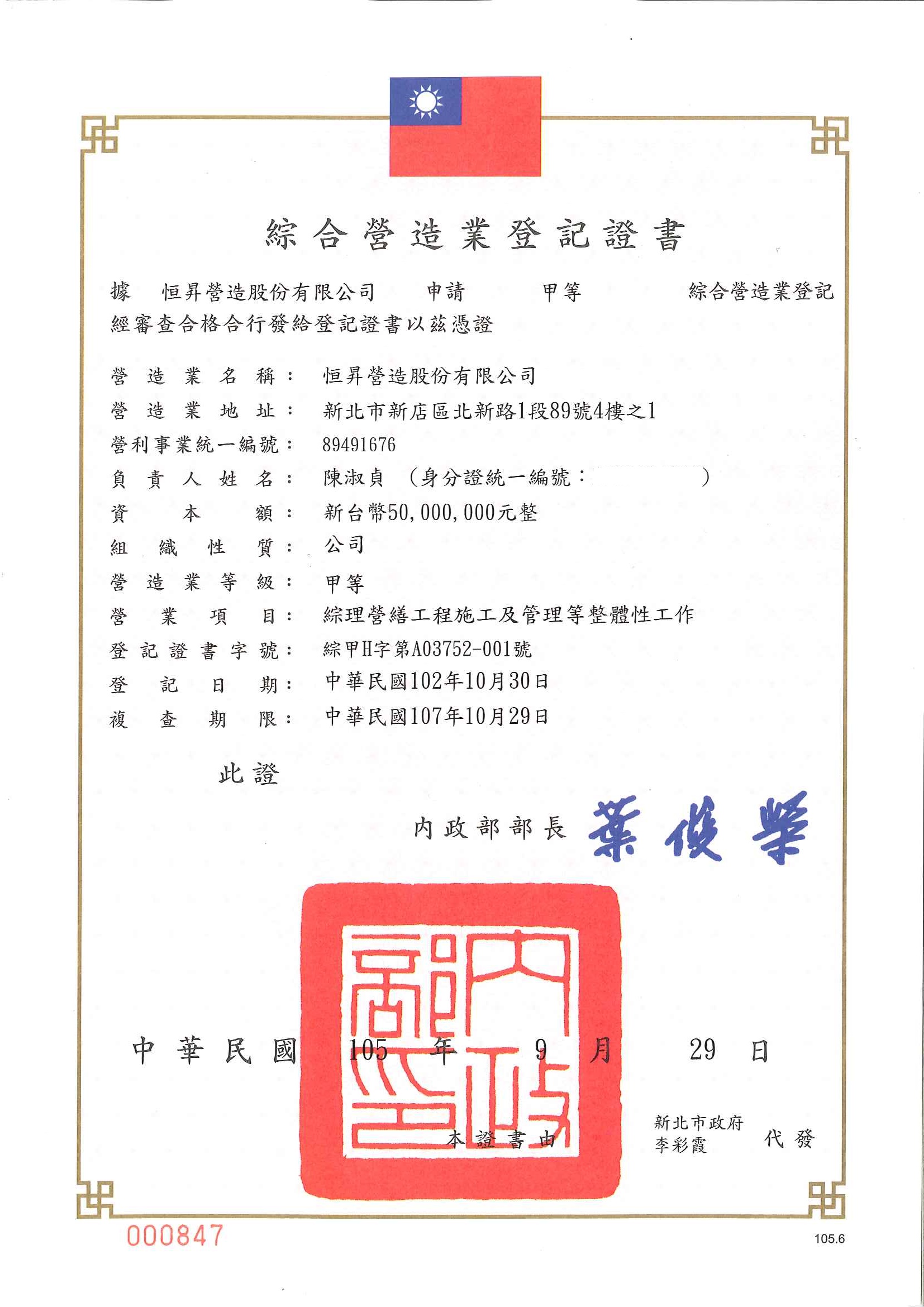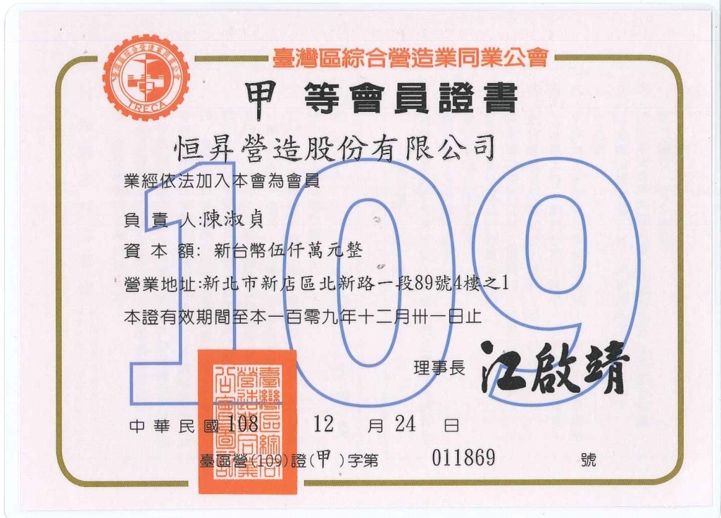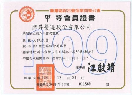 109年台灣區綜合營造工程工業同業公會甲等會員